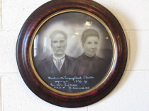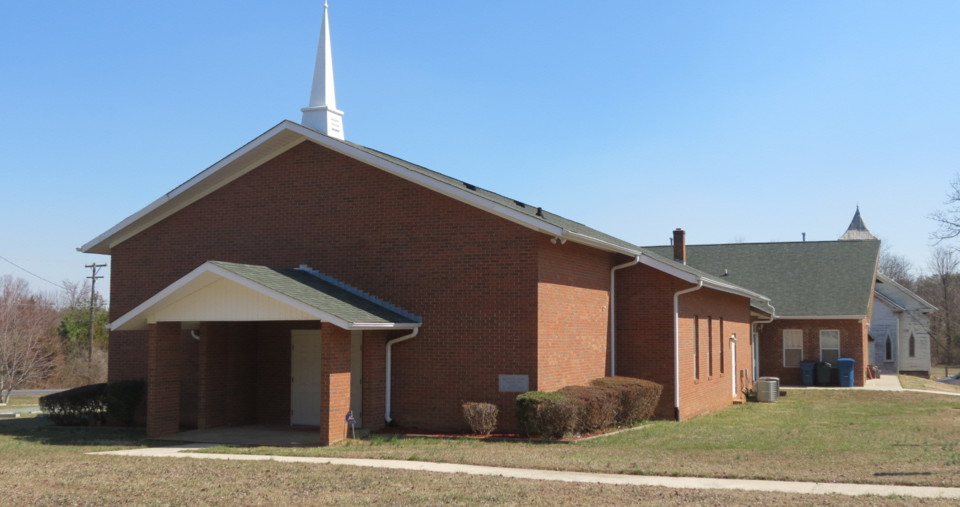 Our first place of worship was a brush arbor with a board nailed between two trees that served as a pulpit. Later a log cabin became the church which was soon replaced by the frame building that stands in the rear of the present church.